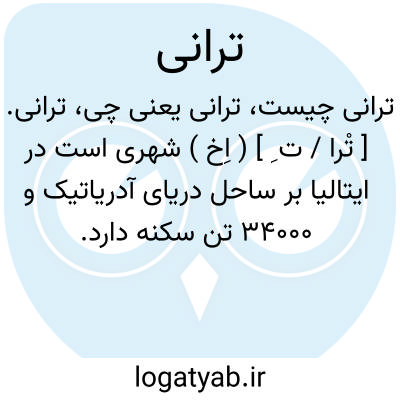 ترانی. [ تْرا / ت ِ ] ( اِخ ) شهری است در ایتالیا بر ساحل دریای آدریاتیک و 34000 تن سکنه دارد. محصول آن پنبه است.
