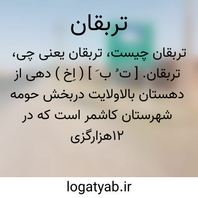 تربقان. [ ت ُ ب َ ] ( اِخ ) دهی از دهستان بالاولایت دربخش حومه شهرستان کاشمر است که در 12هزارگزی جنوب خاوری کاشمر بر سر راه مالرو عمومی کاشمر قرار دارد.آب آن از قنات و محصولش غلات و میوه جات و انگور و پنبه و زیره است و شغل اهالی زراعت و قالی بافی است و راه ماشین رو دارد. ( از فرهنگ جغرافیائی ایران ج 9 ).