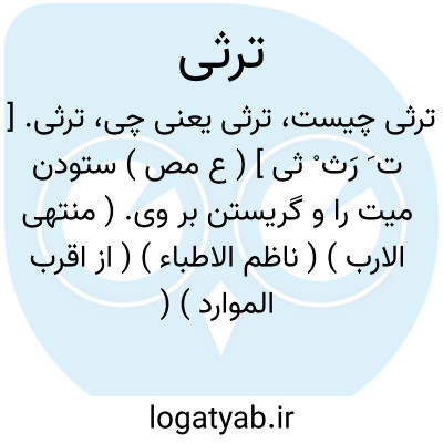 لغت نامه دهخدا ترثی. [ ت َ رَث ْ ثی ] ( ع مص ) ستودن میت را و گریستن بر وی. ( منتهی الارب ) ( ناظم الاطباء ) ( از اقرب الموارد ) ( از المنجد ). رجوع به ترثیة شود.
