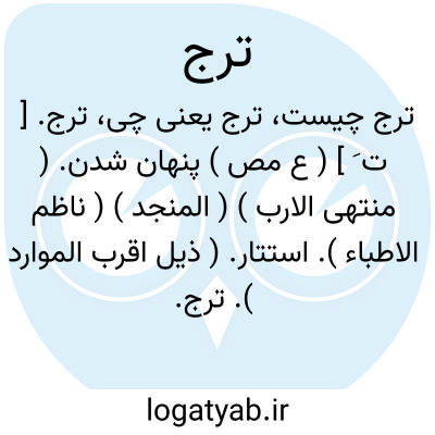ترج. [ ت َ ] ( ع مص ) پنهان شدن. ( منتهی الارب ) ( المنجد ) ( ناظم الاطباء ). استتار. ( ذیل اقرب الموارد ).