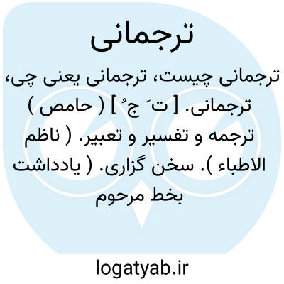ترجمانی. [ ت َ ج ُ ] ( حامص ) ترجمه و تفسیر و تعبیر. ( ناظم الاطباء ). سخن گزاری. ( یادداشت بخط مرحوم دهخدا ). و رجوع به معانی ترجمان شود.