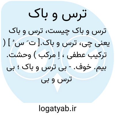 ترس و باک.[ ت َ س ُ ] ( ترکیب عطفی، اِ مرکب ) وحشت. بیم. خوف.