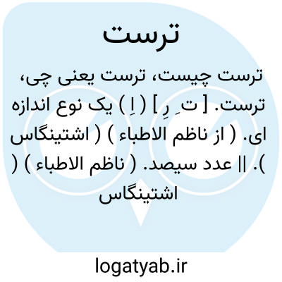 ترست. [ ت ِ رِ ] ( اِ ) یک نوع اندازه ای. ( از ناظم الاطباء ) ( اشتینگاس ). || عدد سیصد. ( ناظم الاطباء ) ( اشتینگاس ) ( شعوری ج 1 ورق 297 ب ). || نورد جولاهگان. ( ناظم الاطباء ).