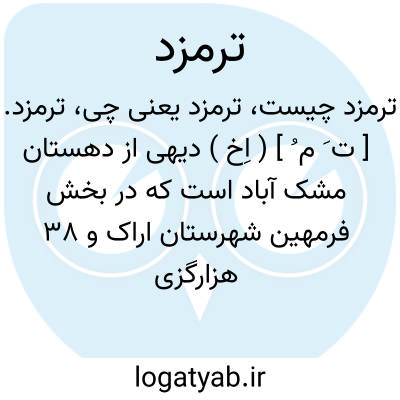ترمزد. [ ت َ م ُ ] ( اِخ ) دیهی از دهستان مشک آباد است که در بخش فرمهین شهرستان اراک و 38 هزارگزی جنوب فرمهین قرار دارد. دشتی سردسیر است و 778 تن سکنه دارد. آب آن از قنات و محصول آنجا غله و ارزن و چغندر قند وبنشن و انگور و لبنیات است. شغل مردم آنجا زراعت و گله داری است و صنایع دستی آنان قالی بافی است راه شوسه به اراک دارد. ( از فرهنگ جغرافیایی ایران ج 2 ).