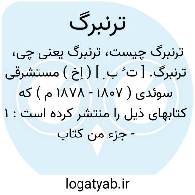 ترنبرگ. [ ت ُ ب ِ ] ( اِخ ) مستشرقی سوئدی ( 1807 - 1878 م ) که کتابهای ذیل را منتشر کرده است: 1 - جزء من کتاب المحاضره از سیوطی. 2 - الانیس المعرب فی اخبار المغرب از ابن ابی زرع الفاسی. 3- فهرست تاریخ الکامل ابن اثیر. 4 - خریدة العجائب وفریدةالغرائب از ابن الوردی. ( از معجم المطبوعات ).