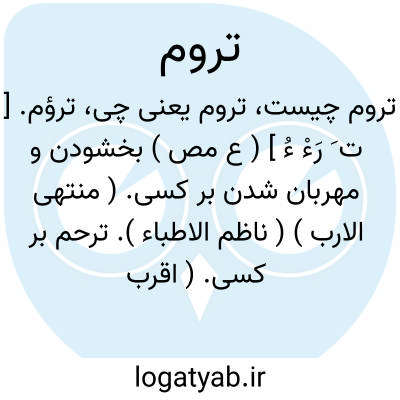 تروم. [ ت َ رَوْ وُ م ُ ] ( ع مص ) سخریه کردن به کسی. ( منتهی الارب ) ( ناظم الاطباء ) ( از اقرب الموارد ) ( از المنجد ).