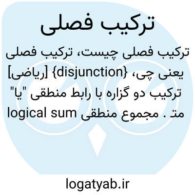{disjunction} [ریاضی] ترکیب دو گزاره با رابط منطقی "یا" متـ. مجموع منطقی logical sum