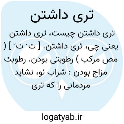 تری داشتن. [ ت َ ت َ ] ( مص مرکب ) رطوبتی بودن. رطوبت مزاج بودن: شراب نو، نشاید مردمانی را که تری دارند و باد بر ایشان غلبه دارد. ( نوروزنامه منسوب به خیام )