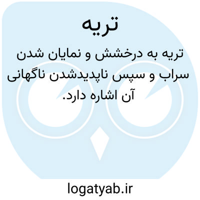 تریه. [ ت َ رَی ْ ی ُه ْ ] ( ع مص )شد و آمد کردن میغ و کوراب. ( تاج المصادر بیهقی ). درخشیدن و ناپدید شدن سراب. ( منتهی الارب ) ( ناظم الاطباء ). نمایان و ناپدید شدن سراب. ( از اقرب الموارد ).