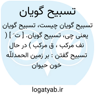 تسبیح گویان. [ ت َ ] ( نف مرکب، ق مرکب ) در حال تسبیح گفتن: بر زمین الحمدللّه خون حیوان بسته نقش بر هوا تسبیح گویان جان حیوان آمده.خاقانی.نقش نامت کرده دل محراب تسبیح وجود تا سحر تسبیح گویان روی در محراب داشت.سعدی.و رجوع به تسبیح و دیگر ترکیبات آن شود.