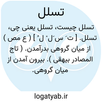 تسلل. [ ت َ س َل ْ ل ُ ] ( ع مص ) از میان گروهی بدرآمدن. ( تاج المصادر بیهقی ). بیرون آمدن از میان گروهی. ( زوزنی ). پنهان بیرون آمدن از میان چیزی یا عام است. ( منتهی الارب ) ( آنندراج ) ( ناظم الاطباء ). به آهستگی و استخفاء از میان ازدحام یا تنگنا بیرون آمدن. ( متن اللغة ) ( اقرب الموارد ) ( از المنجد ). از میان مردم بیرون آمدن. ( ترجمان جرجانی ترتیب عادل بن علی ). || در پسها پنهان شدن. ( زوزنی ) ( ترجمان جرجانی ترتیب عادل بن علی ). || اضطراب. ( متن اللغة ).