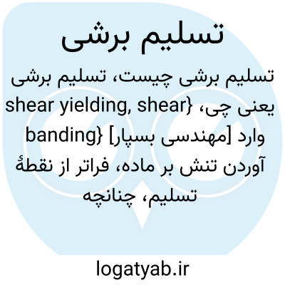 {shear yielding, shear banding} [مهندسی بسپار] وارد آوردن تنش بر ماده، فراتر از نقطۀ تسلیم، چنانچه بدون تغییر حجم دچار کج ریختی شود