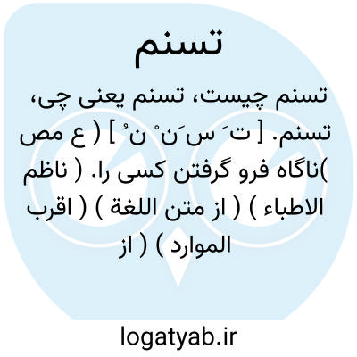 تسنم. [ ت َ س َن ْ ن ُ ] ( ع مص )ناگاه فرو گرفتن کسی را. ( ناظم الاطباء ) ( از متن اللغة ) ( اقرب الموارد ) ( از المنجد ). || برآمدن بر چیزی. ( منتهی الارب ) ( ناظم الاطباء ) ( از متن اللغة )( از اقرب الموارد ) ( از المنجد ). || برجستن فحل بر ماده شتر. || رفتن بر دیوار، از جانب آن. ( از متن اللغة ). || فزون گشتن و منتشرشدن پیری در کسی. ( از متن اللغة ) ( از المنجد ). || نیک باریدن ابر بر زمین. ( از متن اللغة ).