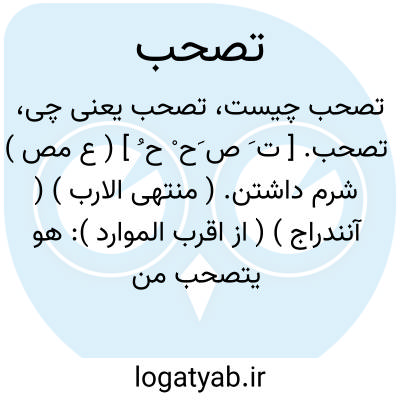 تصحب. [ ت َ ص َح ْ ح ُ ] ( ع مص ) شرم داشتن. ( منتهی الارب ) ( آنندراج ) ( از اقرب الموارد ): هو یتصحب من مجالستنا؛ ای یستحیی. ( اقرب الموارد ). و رجوع به ماده بعد شود.