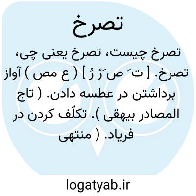تصرخ. [ ت َ ص َرْ رُ ] ( ع مص ) آواز برداشتن در عطسه دادن. ( تاج المصادر بیهقی ). تکلّف کردن در فریاد. ( منتهی الارب ) ( آنندراج ) ( ناظم الاطباء ) ( از اقرب الموارد ):التصرخ بالعطاس حمق. ( بحر الجواهر ) ( منتهی الارب ).