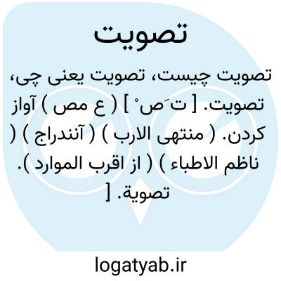 تصویة. [ ت َص ْی َ ] ( ع مص ) خشک شدن. ( منتهی الارب ) ( آنندراج ) ( ناظم الاطباء ) ( از اقرب الموارد ). || خشک کردن پستان ناقه ز بهر فربهی. ( تاج المصادر بیهقی ). شیر نادوشیدن ناقه و مانند آن را تا فربه شود. ( منتهی الارب ) ( آنندراج ) ( ناظم الاطباء ) ( از اقرب الموارد ). || بار ناکردن شتر را و بمراد او گذاشتن تا گشن قوی گردد. ( منتهی الارب ) ( آنندراج ) ( ناظم الاطباء ) ( از اقرب الموارد ). شتر برای گشنی پروردن. ( زوزنی ).