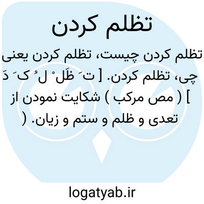 تظلم کردن. [ ت َ ظَل ْ ل ُ ک َ دَ ] ( مص مرکب ) شکایت نمودن از تعدی و ظلم و ستم و زیان. ( ناظم الاطباء ). دادخواهی کردن. داد خواستن: کار بدان منزلت رسید که رشید سوگند خورد که هر کس که از علی تظلم کند آن کس را نزد وی فرستد. ( تاریخ بیهقی چ ادیب ص 423 ).