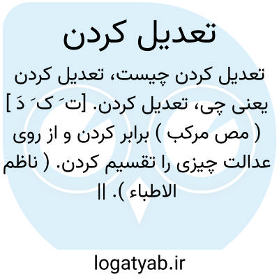 تعدیل کردن. [ت َ ک َ دَ ] ( مص مرکب ) برابر کردن و از روی عدالت چیزی را تقسیم کردن. ( ناظم الاطباء ). || در فارسی امروزین کاستن از شدت و حدت چیزی یا عملی: فلان کس نظر خود را تعدیل کرد. رفتار خود را تعدیل کرد.