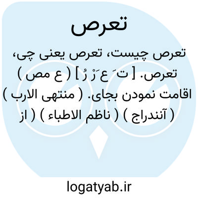 تعرص. [ ت َ ع َرْ رُ ] ( ع مص ) اقامت نمودن بجای. ( منتهی الارب ) ( آنندراج ) ( ناظم الاطباء ) ( از اقرب الموارد ).