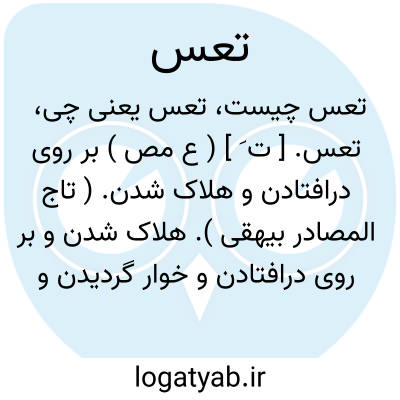 تعس. [ ت َ ع ِ ] ( ع مص ) تاعس. نعت است از تَعس. ( منتهی الارب ). هلاک شونده و برروی درافتاده. ( ناظم الاطباء ). و رجوع به تاعس و دو ماده قبل شود.
