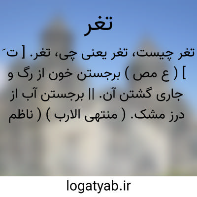 تغر. [ ت َ ] ( ع مص ) برجستن خون از رگ و جاری گشتن آن. || برجستن آب از درز مشک. ( منتهی الارب ) ( ناظم الاطباء ) ( از اقرب الموارد ).