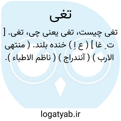 تغی. [ ت ِ غا ] ( ع اِ ) خنده بلند. ( منتهی الارب ) ( آنندراج ) ( ناظم الاطباء ).