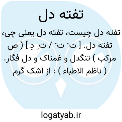 تفته دل. [ ت َ ت َ / ت ِ دِ ] ( ص مرکب ) تنگدل و غمناک و دل فگار. ( ناظم الاطباء ):
