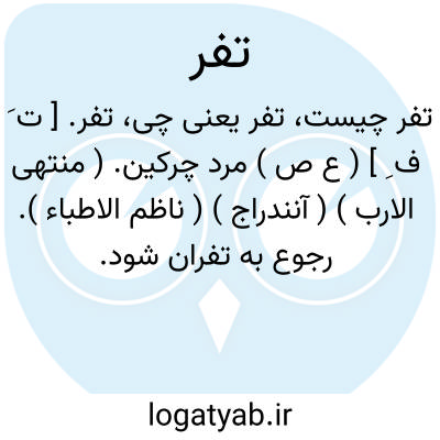 تفر. [ ت َ ف ِ ] ( ع ص ) مرد چرکین. ( منتهی الارب ) ( آنندراج ) ( ناظم الاطباء ). رجوع به تفران شود.