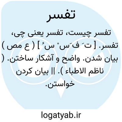 تفسر. [ ت َ ف َس ْ س ُ ] ( ع مص ) بیان شدن. واضح و آشکار ساختن. ( ناظم الاطباء ). || بیان کردن خواستن. ( از اقرب الموارد ). رجوع به استفسار شود.