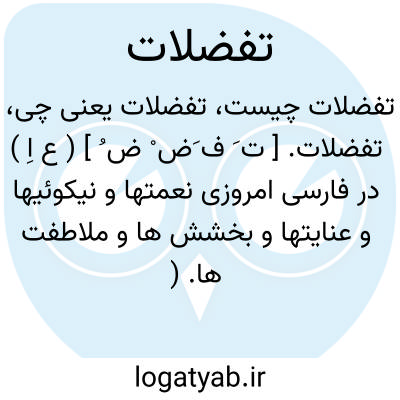 تفضلات. [ ت َ ف َض ْ ض ُ ] ( ع اِ ) در فارسی امروزی نعمتها و نیکوئیها و عنایتها و بخشش ها و ملاطفت ها. ( ناظم الاطباء ).