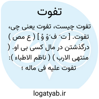 تفوت. [ ت َ ف َوْ وُ ] ( ع مص ) درگذشتن در مال کسی بی او. ( منتهی الارب ) ( ناظم الاطباء ): تفوت علیه فی ماله؛ فاته ُ و به. و به علی متعدی شده است متضمن معنی غلبه باشد. ( از محیط المحیط ) ( از اقرب الموارد ).