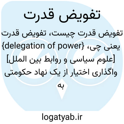 {delegation of power} [علوم سیاسی و روابط بین الملل] واگذاری اختیار از یک نهاد حکومتی به نهاد حکومتی دیگر یا مقام یا سازمانی معین