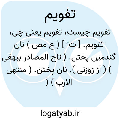 تفویم. [ ت َ ] ( ع مص ) نان گندمین پختن. ( تاج المصادر بیهقی ) ( از زوزنی ). نان پختن. ( منتهی الارب ) ( آنندراج ) ( ناظم الاطباء ) ( از اقرب الموارد ): فوموا لنا؛ ای اختبزوا لنا. ( اقرب الموارد ).