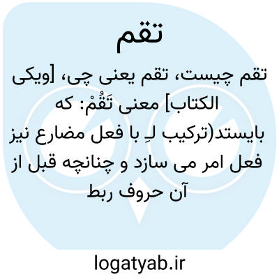 [ویکی الکتاب] معنی تَقُمْ: که بایستد(ترکیب لـِ با فعل مضارع نیز فعل امر می سازد و چنانچه قبل از آن حروف ربط "وَ"،"ثُمَّ" یا "فـَ" بیاید، این لام ساکن می شود مثل "فَلْتَقُمْ")