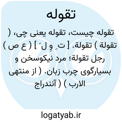 ( تقولة ) تقولة. [ ت ِ وِ ل َ ] ( ع ص ) رجل تقولة؛ مرد نیکوسخن و بسیارگوی چرب زبان. ( از منتهی الارب ) ( آنندراج ) ( ناظم الاطباء ). رجوع به تقوالة شود.