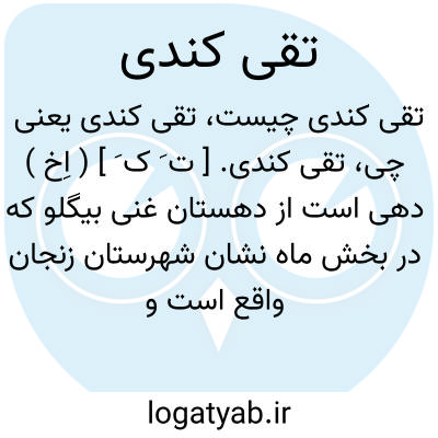 تقی کندی. [ ت َ ک َ ] ( اِخ ) دهی است از دهستان غنی بیگلو که در بخش ماه نشان شهرستان زنجان واقع است و 172 تن سکنه دارد. ( از فرهنگ جغرافیایی ایران ج 2 ).