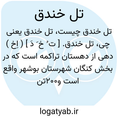 تل خندق. [ ت ُ خ َ دَ ] ( اِخ ) دهی از دهستان تراکمه است که در بخش کنگان شهرستان بوشهر واقع است و200تن سکنه دارد. ( از فرهنگ جغرافیایی ایران ج 7 ).