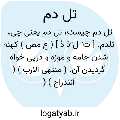 تلدم. [ ت َ ل َدْ دُ ] ( ع مص ) کهنه شدن جامه و موزه و درپی خواه گردیدن آن. ( منتهی الارب ) ( آنندراج ) ( ناظم الاطباء ) ( از اقرب الموارد ). || درپی کردن جامه را و پاره زدن برموزه. لازم و متعدی است. ( منتهی الارب ) ( آنندراج ) ( ناظم الاطباء ). وصله زدن جامه را. ( از اقرب الموارد ).