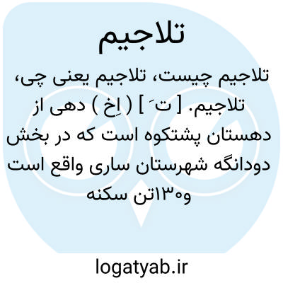 تلاجیم. [ ت َ ] ( اِخ ) دهی از دهستان پشتکوه است که در بخش دودانگه شهرستان ساری واقع است و130تن سکنه دارد. ( از فرهنگ جغرافیایی ایران ج 3 ).