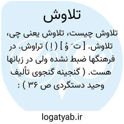 تلاوش. [ ت َ وُ ] ( اِ ) تراوش. در فرهنگها ضبط نشده ولی در زبانها هست. ( گنجینه گنجوی تألیف وحید دستگردی ص 36 ):