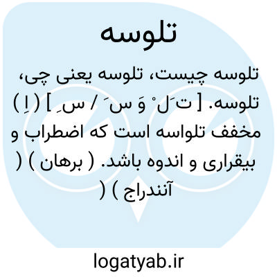 تلوسه. [ ت َل ْ وَ س َ / س ِ ] ( اِ ) مخفف تلواسه است که اضطراب و بیقراری و اندوه باشد. ( برهان ) ( آنندراج ) ( از انجمن آرا ) ( از غیاث اللغات ) ( از ناظم الاطباء )( از فرهنگ جهانگیری ) ( از فرهنگ رشیدی ):