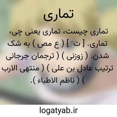 تماری. [ ت َ ] ( ع مص ) به شک شدن. ( زوزنی ) ( ترجمان جرجانی ترتیب عادل بن علی ) ( منتهی الارب ) ( ناظم الاطباء ). شک نمودن در چیزی. ( آنندراج ) ( از اقرب الموارد ). || با یکدیگر ستهیدن. ( زوزنی ) ( ترجمان جرجانی ترتیب عادل بن علی ) ( دهار ).همدیگر خصومت نمودن. ( منتهی الارب ) ( ناظم الاطباء ). باهم جدال کردن. ( آنندراج ). تجادل. ( اقرب الموارد ).