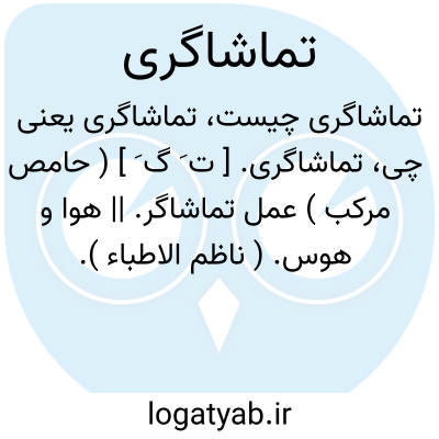 تماشاگری. [ ت َ گ َ ] ( حامص مرکب ) عمل تماشاگر. || هوا و هوس. ( ناظم الاطباء ).