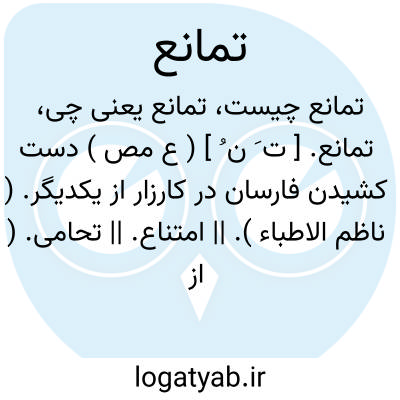 تمانع. [ ت َ ن ُ ] ( ع مص ) دست کشیدن فارسان در کارزار از یکدیگر. ( ناظم الاطباء ). || امتناع. || تحامی. ( از اقرب الموارد ).