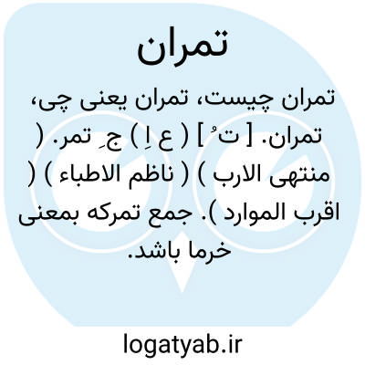 تمران. [ ت َ ]( اِخ ) نام شهری. ( منتهی الارب ) ( ناظم الاطباء ). ناحیه ای است در خراسان به گوزکانان به حدود رباط کروان، نزدیک اندر کوهها. و مهتر ایشان را تمران فرنده خوانند. ( حدود العالم چ دکتر ستوده ص 96 ). رجوع به تاریخ مغول اقبال ص 73 و حدود العالم چ مینورسکی ص 106 شود.