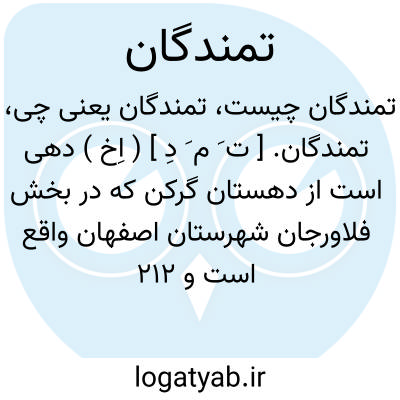 تمندگان. [ ت َ م َ دِ ] ( اِخ ) دهی است از دهستان گرکن که در بخش فلاورجان شهرستان اصفهان واقع است و 212 تن سکنه دارد. ( از فرهنگ جغرافیایی ایران ج 10 ).