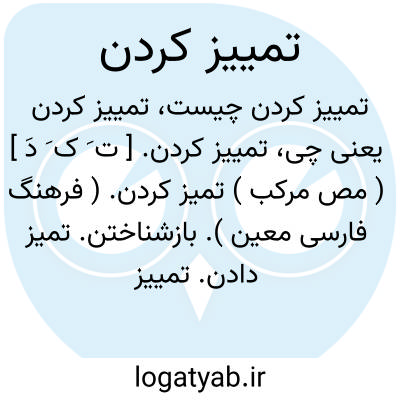 تمییز کردن. [ ت َ ک َ دَ ] ( مص مرکب ) تمیز کردن. ( فرهنگ فارسی معین ). بازشناختن. تمیز دادن. تمییز دادن. || پاکیزه ساختن. نظیف کردن. پاک کردن: