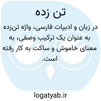 در زبان و ادبیات فارسی، واژۀ تنزده به عنوان یک ترکیب وصفی، به معنای خاموش و ساکت به کار رفته است. این کلمه در منابع معتبر لغوی، از جمله ناظمالاطباء و شرفنامهی منیری، با همین معنا ثبت شده و گواهی بر غنای واژگانی زبان فارسی است. همچنین در فرهنگ اسدی، با استناد به یادداشتهای مرحوم دهخدا، صورت دیگری از این واژه به شکل کاغه نیز ذکر شده که نشان از سیر تحول و تنوع کاربردی آن در متون کهن دارد.