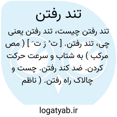 تند رفتن. [ ت ُ رَ ت َ ] ( مص مرکب ) به شتاب و سرعت حرکت کردن. ضد کند رفتن. چست و چالاک راه رفتن. ( ناظم الاطباء ). || در تداول امروز، از حد خود تجاوز کردن و بیش از اندازه اظهار وجود کردن. رجوع به تند و دیگر ترکیبهای آن شود.