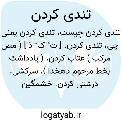 تندی کردن. [ ت ُ ک َ دَ ] ( مص مرکب ) عتاب کردن. ( یادداشت بخط مرحوم دهخدا ). سرکشی. درشتی کردن. خشمگین شدن. غضب کردن. خشونت کردن در رفتار و گفتار:
